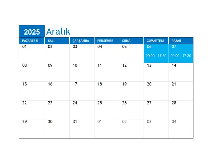 🕘 Zaman: Cumartesi & Pazar, 09:00 – 17:30